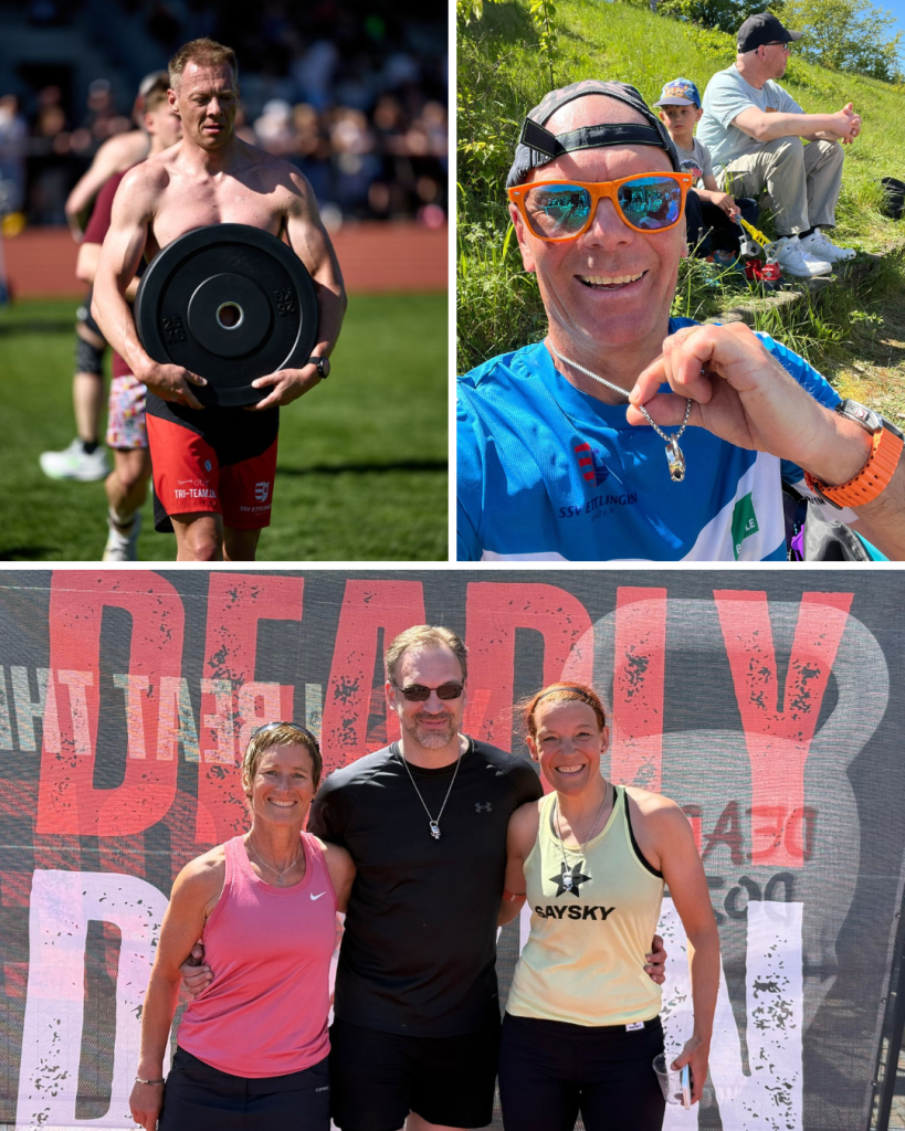 Bei bestem Frühlingswetter wurde das Hans-Bretz-Stadion am 25. April 2026 zur Bühne für den fordernden Wettkampf Deadly Dozen. Rund 300 Athletinnen und Athleten traten in der Solowertung an. Das Format: 12 x 400 Meter Laufen, unterbrochen von 12 intensiven Kraftübungen wie Kettlebell-Deadlifts, Lunges, Farmers Carry, Bear Crawl und 60 Meter Burpeesprüngen. Ohne echte Pause ging es Runde für Runde an die körperliche und mentale Grenze. Fünf Starter*innen des Tri-Team Ettlingen stellten sich der Herausforderung, kämpften sich durch alle „Journeys“ und finishten unter großem Applaus des Publikums.